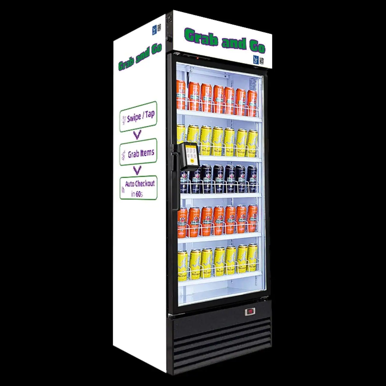 How it Works: This is a locked cooler that has cameras in it operated with AI technology. When a credit card is swiped the door will unlock. The consumer grabs the item(s) and when the door is shut the system charges them for the items retrieved. On the back end of the system it tracks your usage on a portal you have access to.